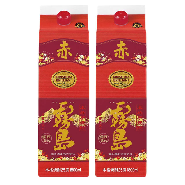 赤霧島 25度 パック 1800ml 芋焼酎 霧島酒造