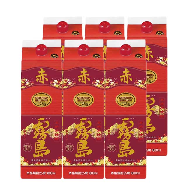 【送料無料】赤霧島 25度 パック 1800ml×6本 芋焼酎 霧島酒造