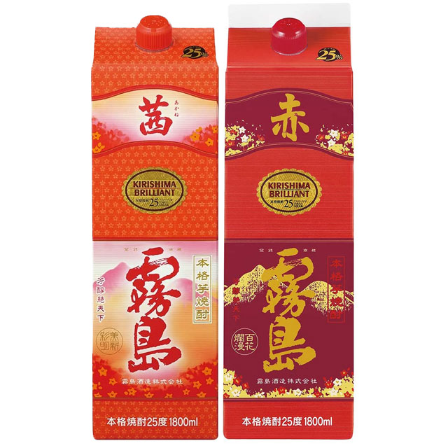 【送料無料】茜霧島・赤霧島 25度 パック 1800ml×各1本 芋焼酎 霧島酒造