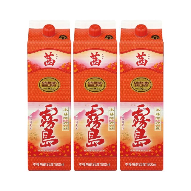 【送料無料】茜霧島パック 25度 1800ml×3 芋焼酎 霧島酒造