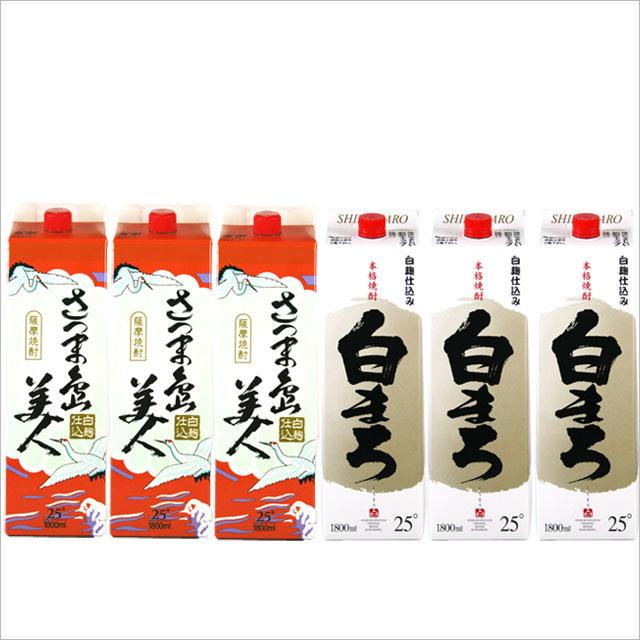 【送料無料】島美人パック3本+白まろパック3本 1800ml×6本セット 芋焼酎
