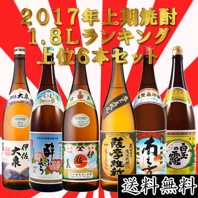 【送料無料】2017年上期売上ランキング 芋焼酎セット(伊佐美・三岳酔ふよう・薩摩維新・南之方・白玉の露・伊佐大泉) 1800ml×各1本 計6本