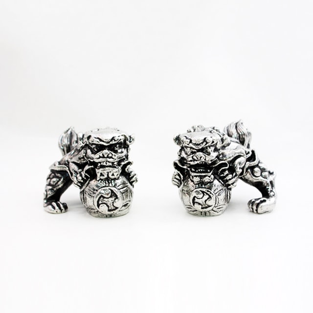 薩摩錫器 錫 置物 獅子 (一対) イブシ加工 177 薩摩錫器工芸館 代引不可