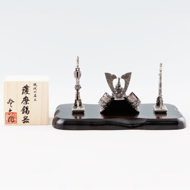 受注生産 薩摩錫器 錫 置物 兜 台付 イブシ加工 512B-1 薩摩錫器工芸館 代引不可