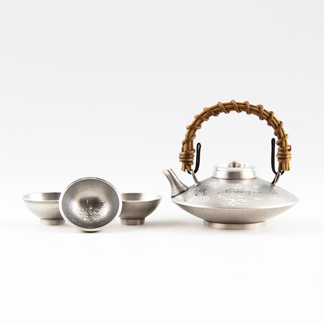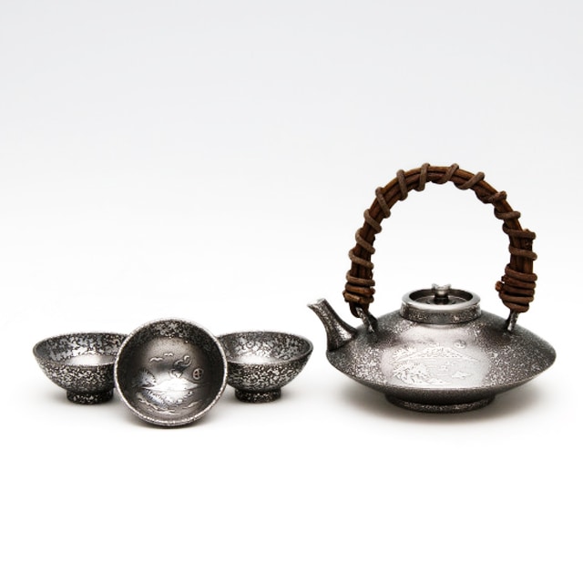 薩摩錫器 錫 黒じょか・ちょか 鶴 イブシ加工 盃3ケ 260ml 57-2 薩摩錫器工芸館 代引不可