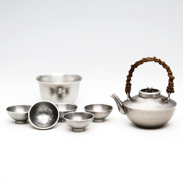 薩摩錫器 錫 黒じょか・ちょか イブシ加工 錫手 盃5ケ 盃洗付 300ml 59-5-1 薩摩錫器工芸館 代引不可