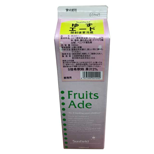 【日付指定不可】三田エード ゆずみつエード 1リットル