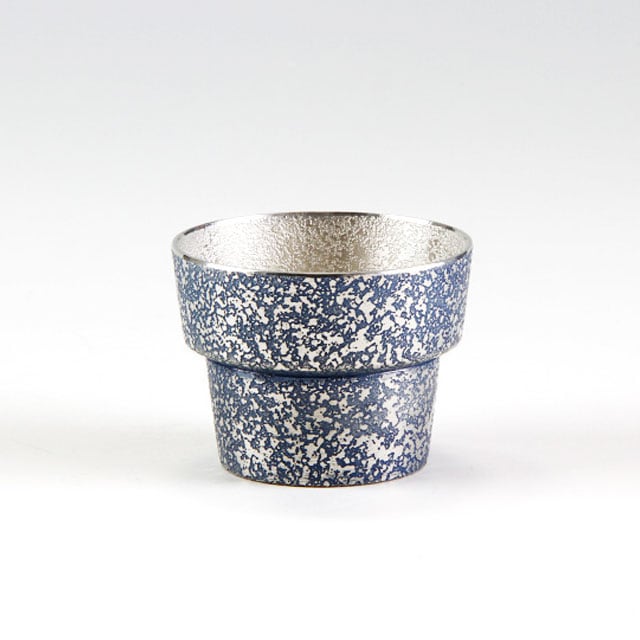 薩摩錫器 錫 ぐい呑 吹雪 イブシ加工 藍 80ml 91B-4 薩摩錫器工芸館 代引不可