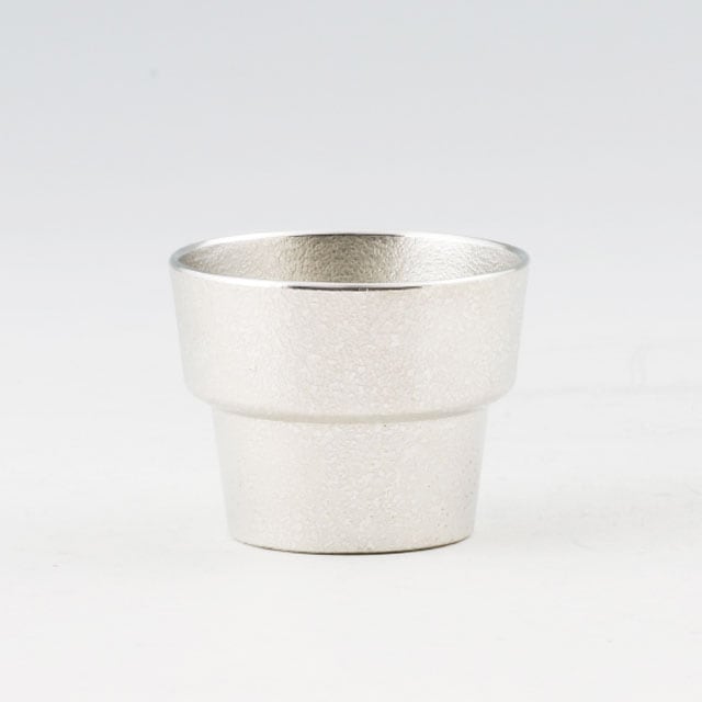 薩摩錫器 錫 ぐい呑 筒型 吹雪白上げ加工 65ml 90-1 薩摩錫器工芸館 代引不可