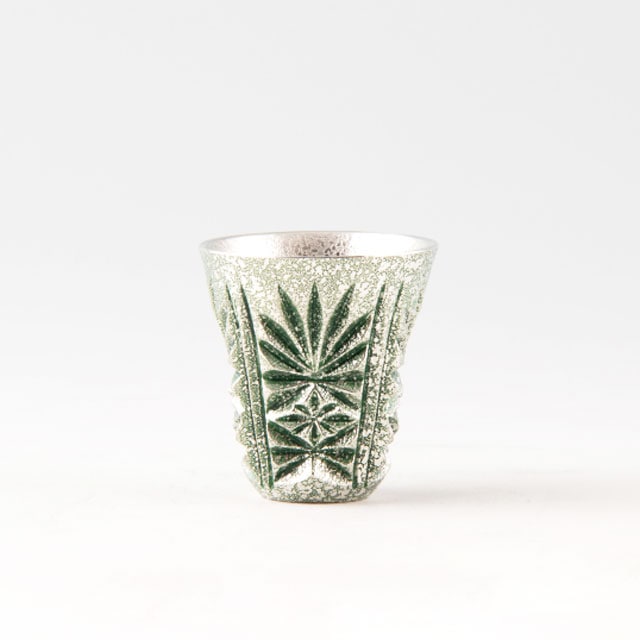 薩摩錫器 錫 切子ぐい呑 緑 イブシ加工 45ml 97 薩摩錫器工芸館 代引不可