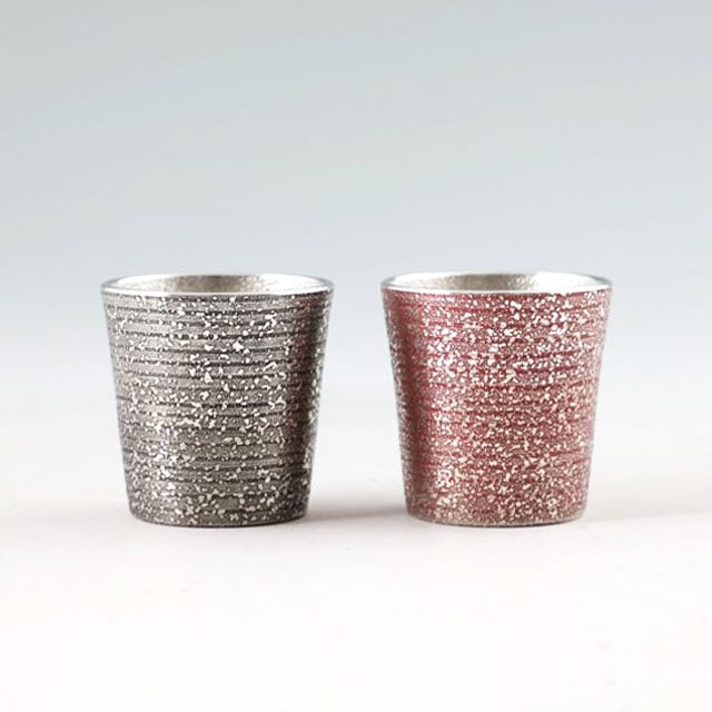 薩摩錫器 錫 ぐい呑み 吹雪黒漆 ・ 吹雪赤漆 110ml × 2個 セット 91c-2 91c-3 薩摩錫器工芸館 代引不可