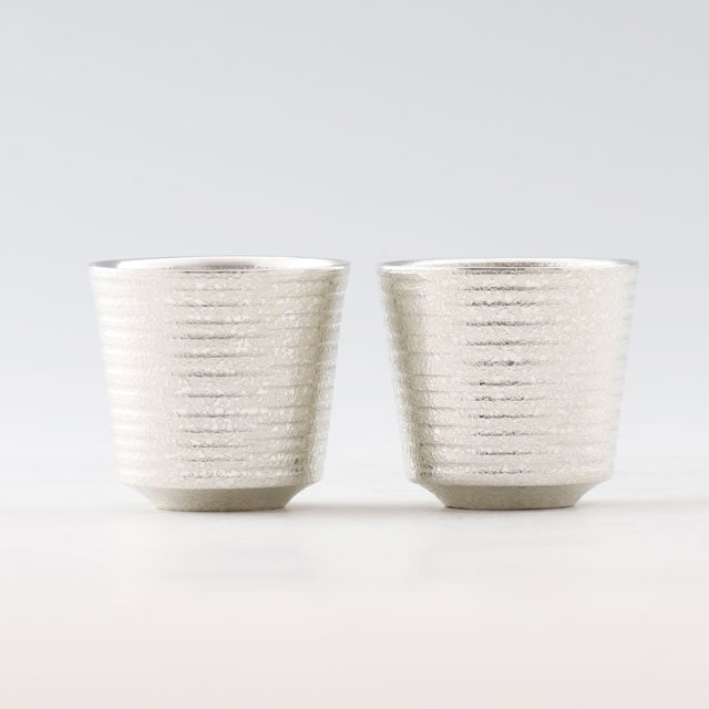 薩摩錫器 錫 ぐい呑 筒型 吹雪白上げ加工 65ml ×2個セット 90-1-2 薩摩錫器工芸館 代引不可