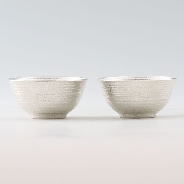 薩摩錫器 錫 ぐい呑 丸型 吹雪白上げ加工 50ml ×2個 113C-1-2 薩摩錫器工芸館 代引不可