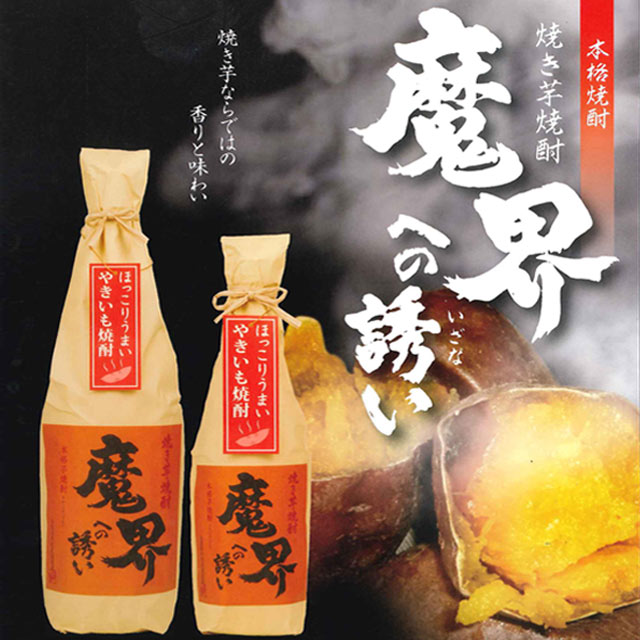| 皮ながら焦げがつかない位の最適な状態で焼きあげた芋を使って、皮ながら粉砕して仕込んでいき、蒸留後は原酒が出来上がると、マイナス5℃で丸2日間冷却し、手作業で油分などを取り除き手間暇かけて造られていきます。 出来上がった焼酎は雑味が少なく、味・香りとも芳醇で、焼き芋独特の柔らかな甘みとまろやかさを醸し出した上品な味わいが特徴です。 芋焼酎 魔界 焼酎 焼き芋 光武酒造場 | |