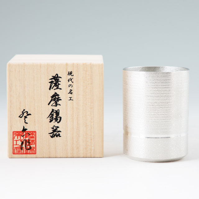 | 涼しげな模様をあしらった錫のタンブラーは、日本酒や、焼酎、冷たいドリンクを飲むのにピッタリです。 錫は、昔から入れた飲み物をまろやかにすると言われてきました。毎日の晩酌のお供にいかがでしょうか。 鹿児島に根付く"芋焼酎"も、鹿児島県の伝統工芸品に認定されている「薩摩錫器」と一緒に楽しむことできっとさらにおいしく感じられます。 錫器の重みと質感が手になじむタンブラー。シンプルなデザインで若い方からご年配の方まで幅広い方にお使いいただけます。 ギフトとしての贈り物にも喜ばれる一品です。 |
