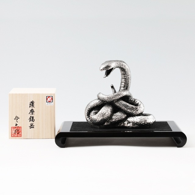 薩摩錫器 錫 置物 蛇 台付 186F-6 岩切美巧堂 代引不可