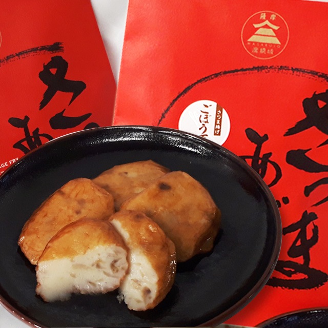 | ■原材料 | 魚肉(イトヨリ、スケトウ)、ごぼう、砂糖、本みりん、食塩、灰持酒、魚醤、唐辛子、揚げ油(菜種油)/加工デンプン、調味料(アミノ酸等)、甘味料(ソルビトール)、保存料(ソルビン酸K),(一部に小麦、大豆を含む) |
