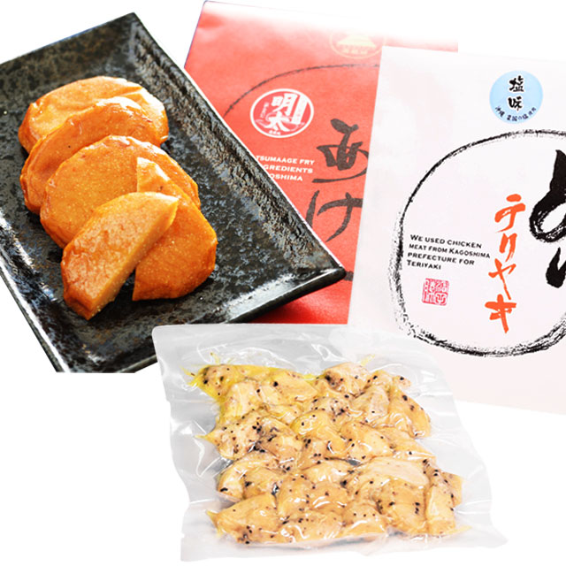 | ■内容量 | 鶏のテリヤキ 150g さつま揚げ辛子明太子天 4枚入 |