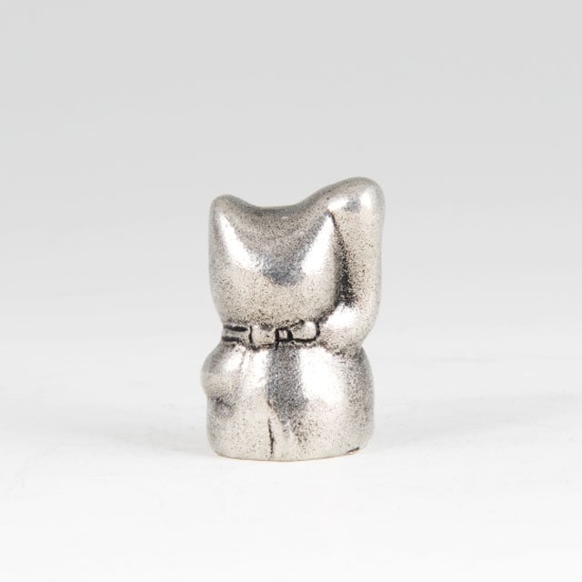 | 錫製の置物「招き猫」です。 招き猫は、商売繁盛の縁起物として知られています。右手を挙げている猫は金運を招き、左手を挙げている猫は人(お客様)を招くとされているそうです。 縁起物として記念品や贈り物におすすめです。 |