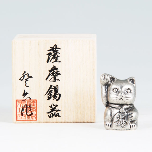 薩摩錫器 錫 置物 招き猫 イブシ加工 181A-2 岩切美巧堂 代引不可
