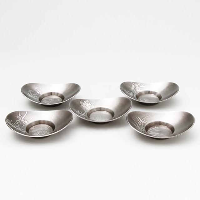薩摩錫器 錫 茶托 小判型 5枚セット 36 薩摩錫器工芸館 代引不可