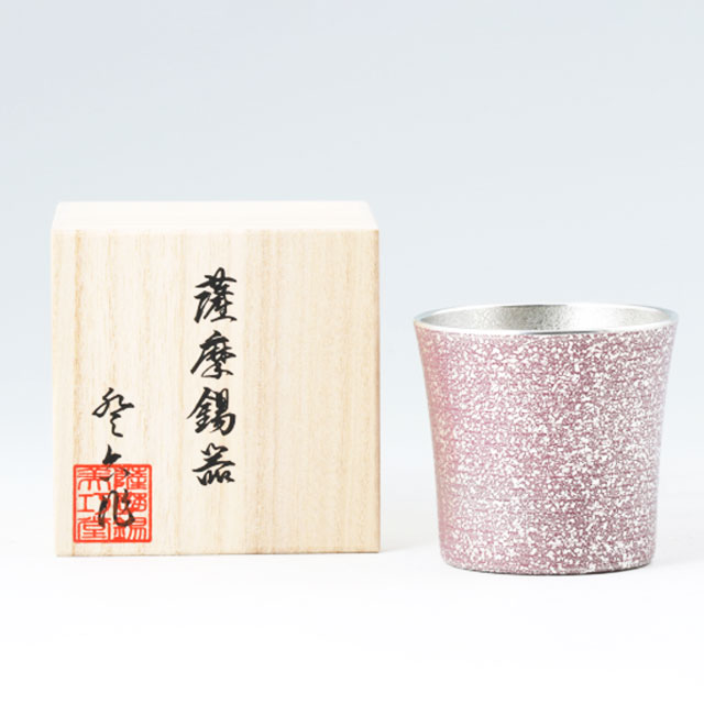 薩摩錫器 錫 タンブラー オンザロック 紫 吹雪加工 260ml 86A-1-B 薩摩錫器工芸館 代引不可