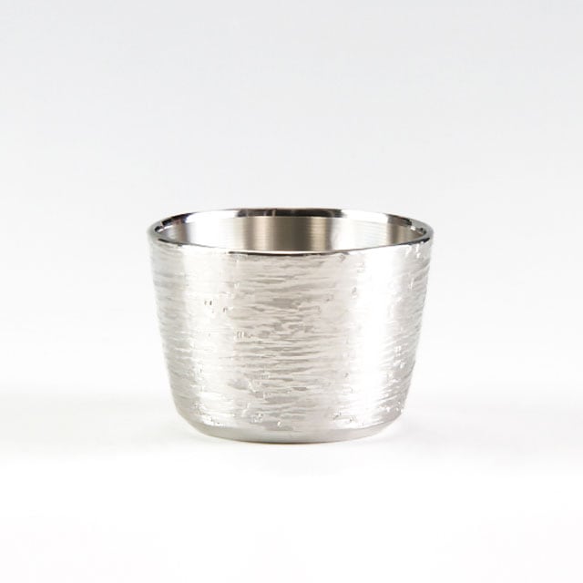 | 錫のぐい呑みは、日本酒や、焼酎を楽しむのにピッタリです。 錫は、昔から入れた飲み物をまろやかにすると言われてきました。毎日の晩酌のお供にいかがでしょうか。 錫器の質感が手になじむ「ぐい呑」に水が流れるようなさわやかな柄を施しました。 錫器と一緒にさらにおいしいお酒を楽しみませんか。 鹿児島に根付く"芋焼酎"も、鹿児島県の伝統工芸品に認定されている「薩摩錫器」と一緒に楽しむことできっとさらにおいしく感じられます。 ギフトとしての贈り物にも喜ばれる一品です。 |