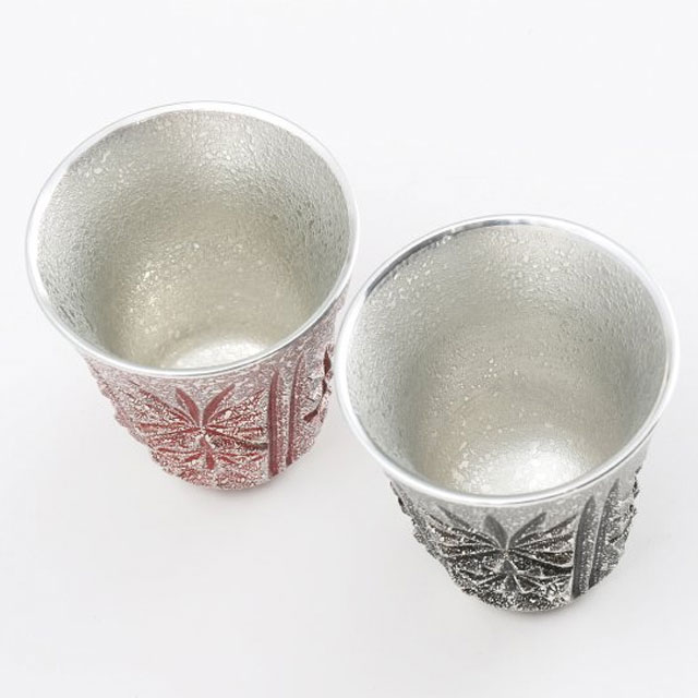 | 日本酒や焼酎を鹿児島県の伝統工芸品に認定されている「薩摩錫器」と一緒に楽しむのはいかがでしょうか。 「器にこだわるとさらにおいしい───」 錫器の程よい重みと質感が手になじむぐい呑。薩摩切子をイメージして施しました。 光の当たり方によってキラキラと見え方が変化する様子をお楽しみください。 ギフトとしての贈り物にも喜ばれる一品を赤黒2色のセットにしました。 ギフトとしての贈り物にも喜ばれる一品です。 |