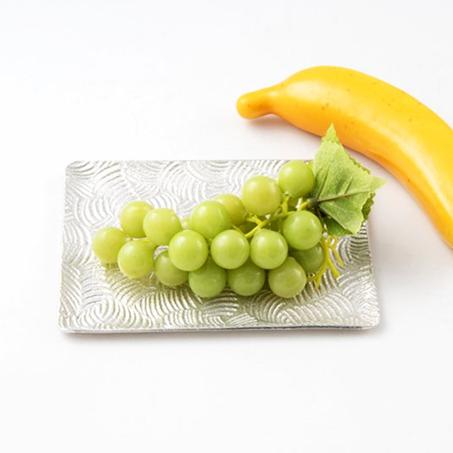 | 錫の銘々皿です。お料理の盛り付けに上品な錫の銘々皿はいかがでしょうか。 波の柄が入った上品な錫の銘々皿が食卓を華やかに彩ります。 ご自宅の食卓でのご使用はもちろん、贈り物にもおすすめです。 |