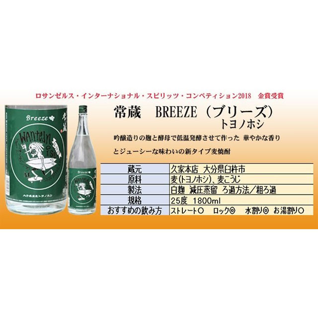 常蔵 BREEZE(つねぞうブリーズ)麦焼酎 25度 トヨノホシ 1800ml 久家本店 大分県