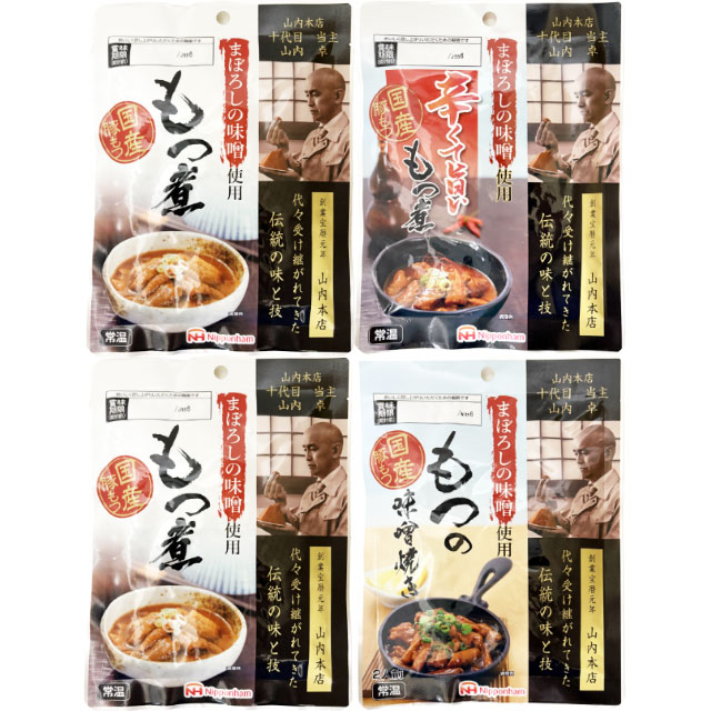 | ■内容量 | もつ煮180g×2個 もつの味噌焼き 170g 辛くて旨いもつ煮 170g |