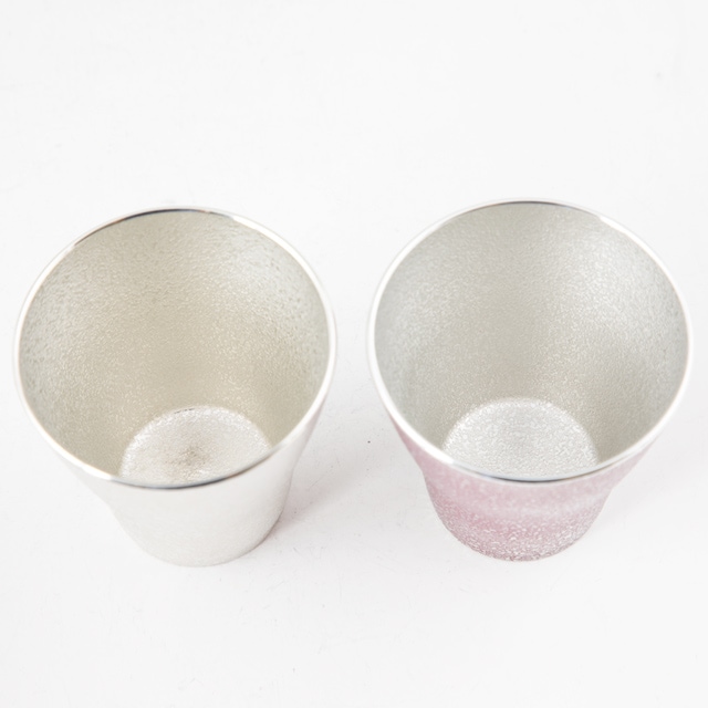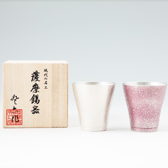 ×薩摩錫器 錫フリーカップゼロ2個セット 吹雪白加工140ml・紫漆加工140ml 78-1 78-1-B 薩摩錫器工芸館 代引不可