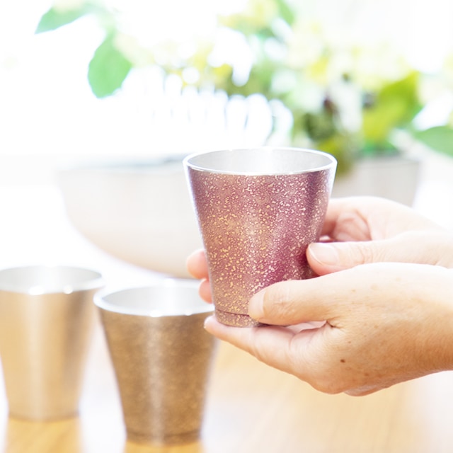 | フリーカップゼロの小さいサイズができました。女性にもちょうどしっくりくる大きさです。 錫のタンブラーで、日本酒や、ワイン、焼酎、ビール、冷たいドリンクはいかがでしょうか。 錫は、昔から入れた飲み物をまろやかにすると言われてきました。 シンプルなデザインで若い方からご年配の方まで幅広い方にお使いいただけます。 ギフトとしての贈り物にも喜ばれる一品です。 |