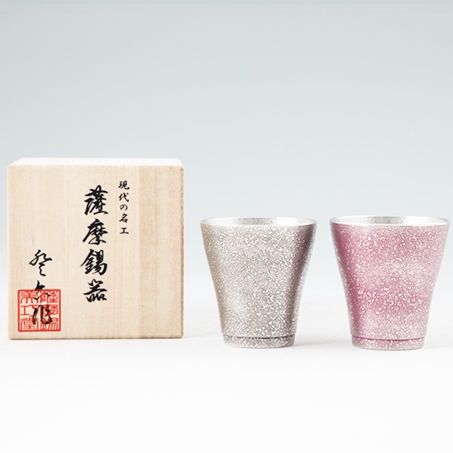 ×薩摩錫器 錫フリーカップゼロ2個セット 黒漆加工140ml・紫漆加工140ml-A 78-1-B 薩摩錫器工芸館 代引不可