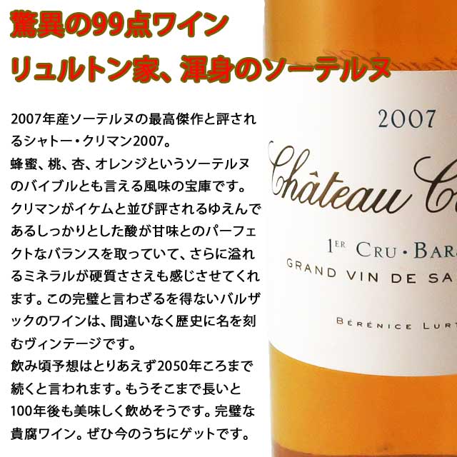 シャトー・クリマン 2007 750ml 貴腐ワイン ソーテルヌ 格付1級