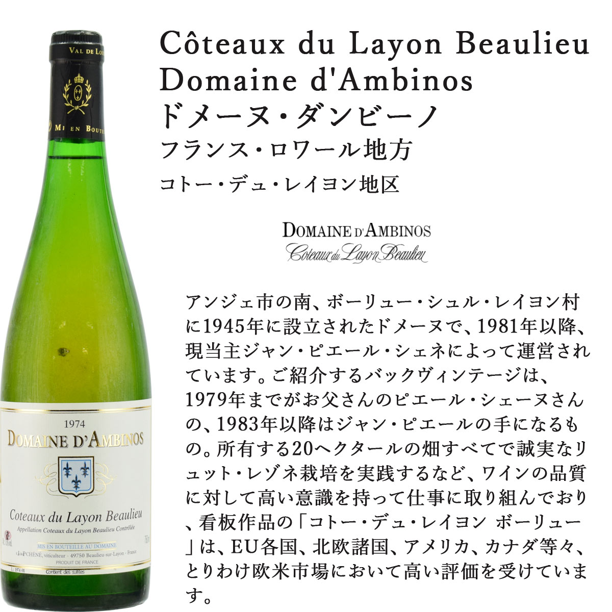 コトー・デュ・レイヨン ボーリュー 1974 750ml 白甘口 ドメーヌ・ダンビーノ ロワール