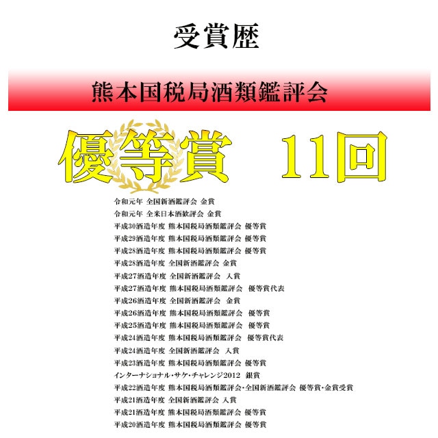 | 昔ながらの伝統と技術で高千穂産の酒造好適米山田錦を50%以下になるまで磨き上げ、総米700kgを手洗いし、米と米麹だけで醸したさわやかな口あたりの酒。神々の里 高千穂を水源とする五ヶ瀬川の伏流水を仕込水に使用。明治36年創業(1903年)鮎の里宮崎県延岡市で生まれた伝統の銘酒。 | |