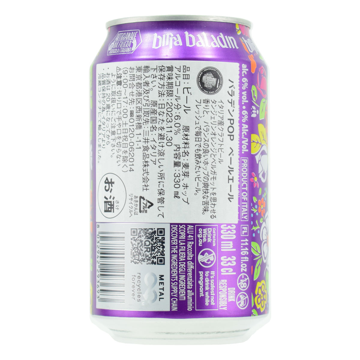 バラデン イタリアビール POP (ポップ) 330ml缶 6% アメリカン・ペールエール・スタイル