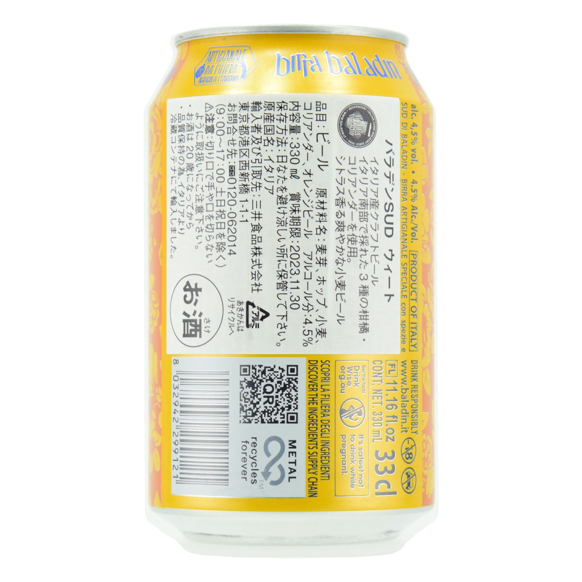 バラデン イタリアビール SUD (スッド) 330ml缶 4.5% アメリカン・ペールエール・スタイル