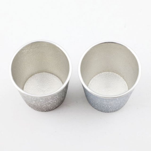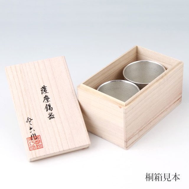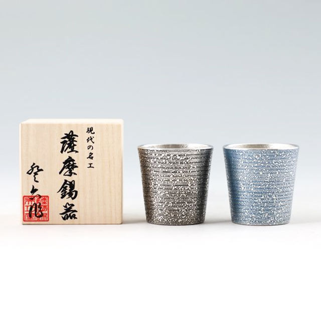 | 錫は、昔から入れた飲み物をまろやかにすると言われてきました。 鹿児島に根付く"芋焼酎"も、鹿児島県の伝統工芸品に認定されている「薩摩錫器」と一緒に楽しむことできっとさらにおいしく感じられます。 錫の質感が手になじむ、ちょうどよいサイズの「ぐい呑」をシンプルに仕上げ、2色のセットにしました。 シンプルなデザインで若い方からご年配の方まで幅広い方にお使いいただけます。 ギフトとしての贈り物にも喜ばれる一品です。 |