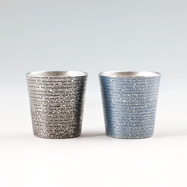 薩摩錫器 錫 ぐい呑み 吹雪黒漆 ・ 吹雪藍漆 110ml × 2個 セット 91c-2 91c-4 薩摩錫器工芸館 代引不可