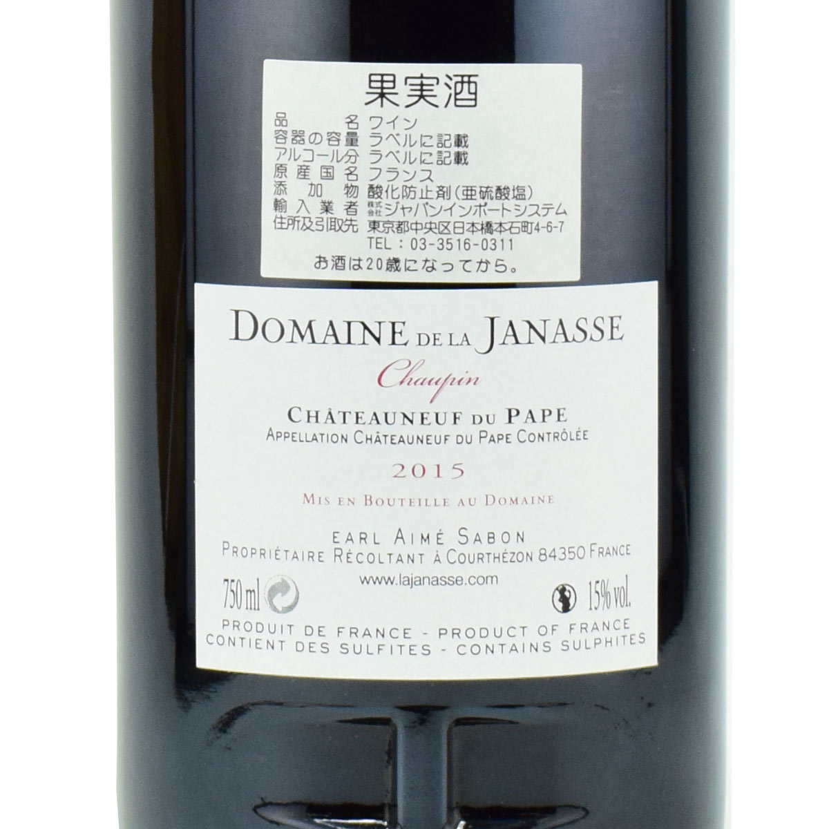 ドメーヌ・ド・ラ・ジャナス シャトー・ヌフ・デュ・パプ 2015 750ml赤 キュヴェ・ショーパン