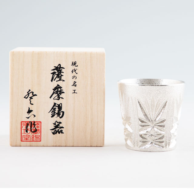 薩摩錫器 錫 切子グラス (白色) 120ml 110-2 岩切美巧堂 代引不可