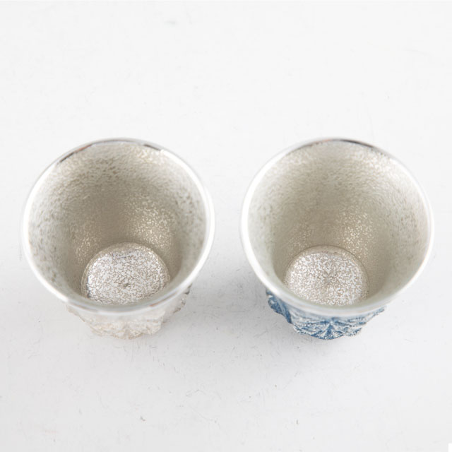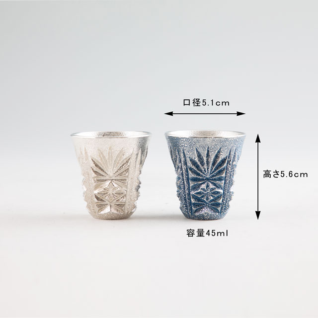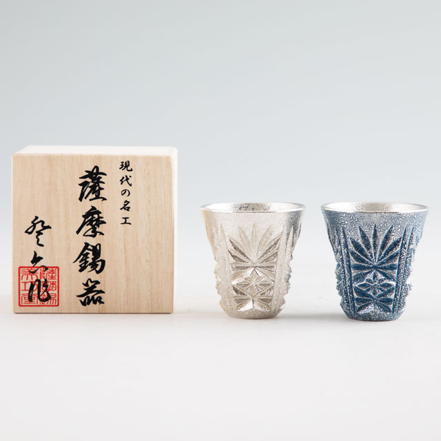 薩摩錫器 錫 切子ぐい呑み 白色・漆藍色加工 2個セット 110-1 111-1 岩切美巧堂 代引不可