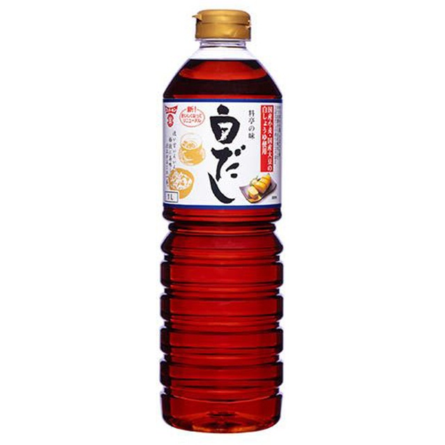 | フンドーキン料亭の味白だしは、しろしょうゆをベースにかつお、こんぶのだしをきかせた、風味豊かな白だしです。通常のうすくちしょうゆとしても便利にご利用できます。 | |