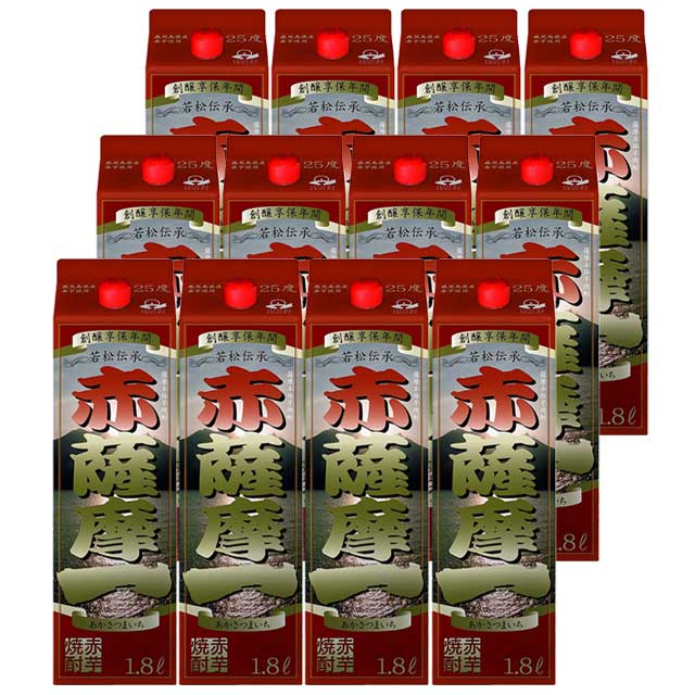【送料無料】赤薩摩一 パック 25度 1800ml×12本セット 芋焼酎 若松酒造 ケース買い