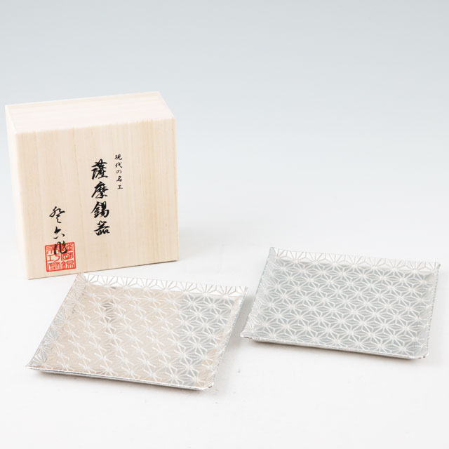 薩摩錫器 錫 切子大皿角型 麻の葉 2枚セット 2010-1-B-2 代引不可 薩摩錫器工芸館