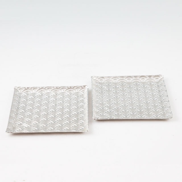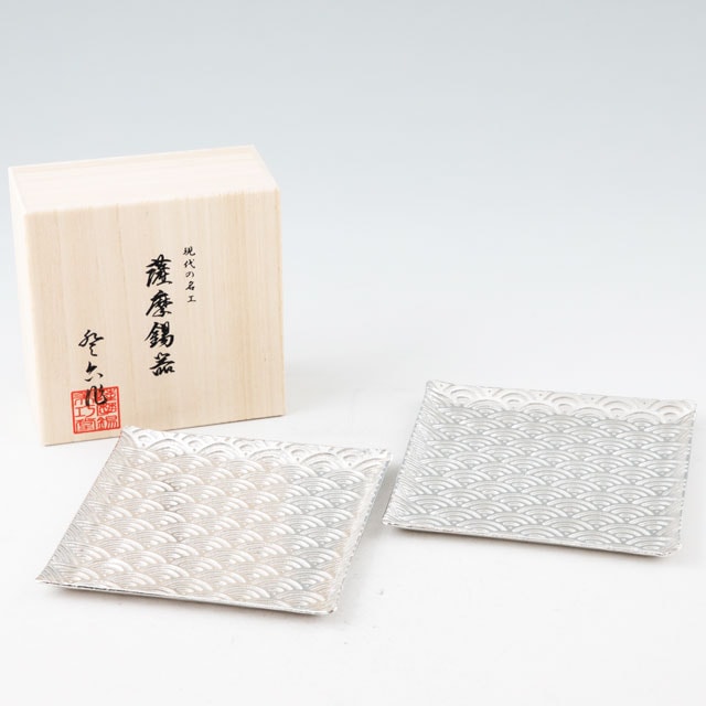 薩摩錫器 錫 切子大皿角型 青海波 2枚セット 2010-2-B-2 代引不可 薩摩錫器工芸館