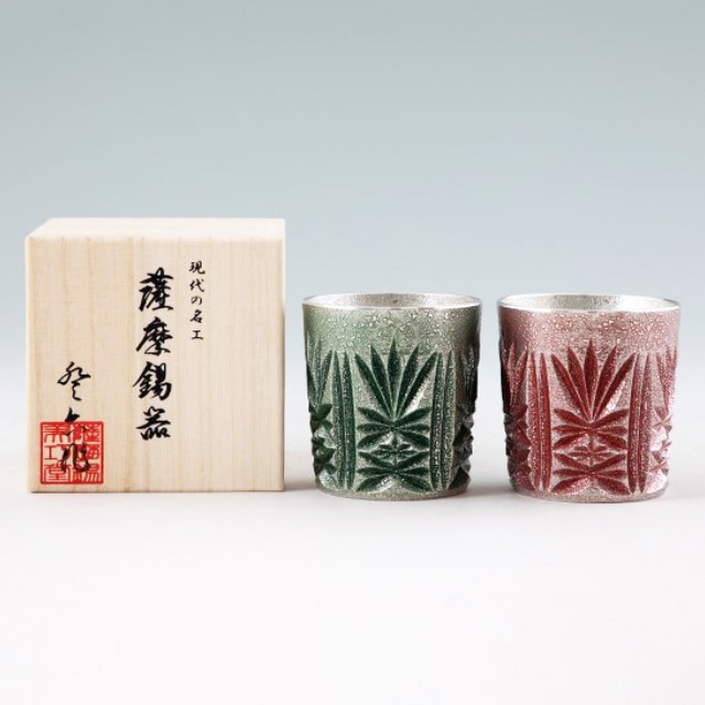 薩摩錫器 錫 切子オンザロック 緑漆加工・赤漆加工 200ml×2 155-1 155-3 岩切美巧堂 代引不可