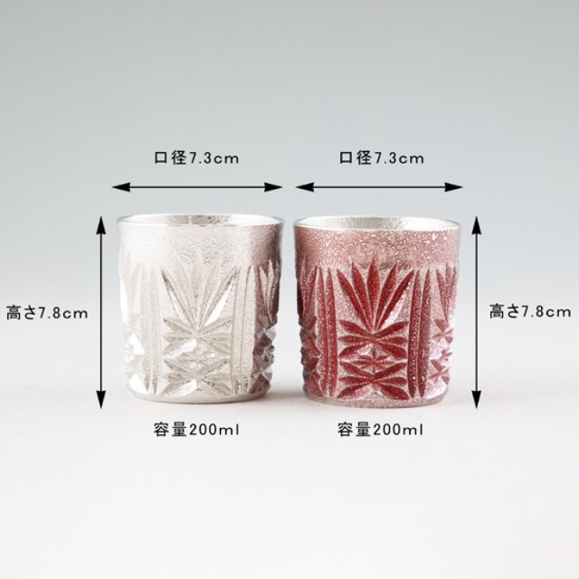 | 薩摩切子をモチーフにした繊細な文様の赤と白がモダンなタンブラーセットです。 飽きのこない繊細な美しさは職人の伝統的な手法に現代的な感覚から生まれました。 錫のタンブラーで、日本酒や、ワイン、焼酎、ビール、冷たいドリンクはいかがでしょうか。 錫は、昔から入れた飲み物をまろやかにすると言われてきました。 シンプルなデザインで若い方からご年配の方まで幅広い方にお使いいただけます。 ギフトとしての贈り物にも喜ばれる一品です。 |